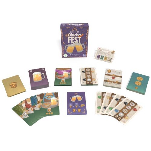 Oktoberfest is het perfecte spel voor 2 spelers met 30 vrije minuten en biertjes in de hand. Dit spel is ontworpen om te plannen, lachen, strategieën uit te stippelen en verhalen te delen over de herfstfestivals die je hebt meegemaakt.